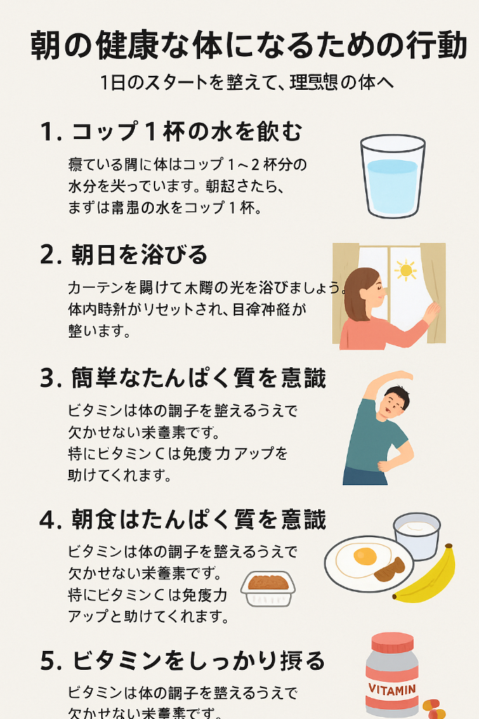 今日は、誰でもできる「朝の健康習慣」を5つご紹介します。