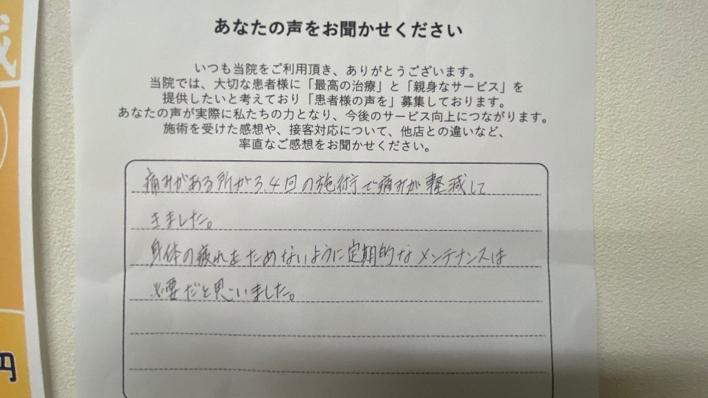 仕事で疲れがたまる日々でしたが、Personal Completeのおかげで、体力がつき、日々の疲れが軽くなりました。
